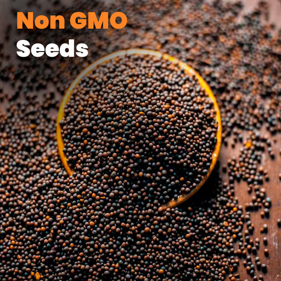 Our Wood-Pressed Black Mustard Oil is made from organically grown GMO Free Black Mustard Seeds, cold pressed in Wooden Kolhus at a very slow RPM. So that minimal heat is generated in the extraction process. Keeping all the nutrition intact and giving a strong pungent aroma
