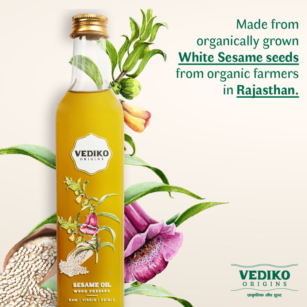 Answer: Also known as 'til ka tel' in Hindi, when white Sesame seeds are hand-selected by artisans and crushed using the traditional ancient crushers, it is a 'cold pressed' white Sesame oil. Due to this technique, there is no extraction of oil without the use of heat, which in turn, preserves its natural nutritional content.