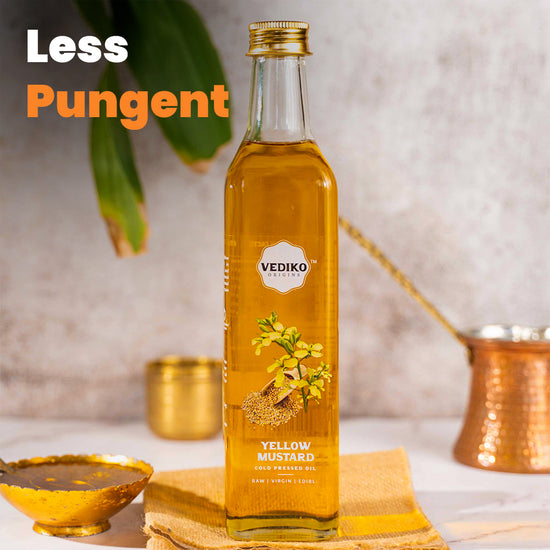 Answer: Both yellow and black Mustard oils are good for cooking but their usage depends on individuals and their food palette. Though they have similar nutritional values, the pungency quotient and the flavor profile differs a little. yellow mustard oil is less pungent with a mild flavour whereas black mustard oil has a strong pungent smell along with the flavor. But if we look at the Indian dishes and our traditional curry based diets, black Mustard is often used.